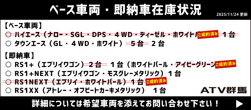 軽車中泊カー「RS1」シリーズやハイエース車中泊カー「RS MAX」シリーズ