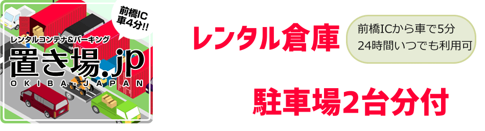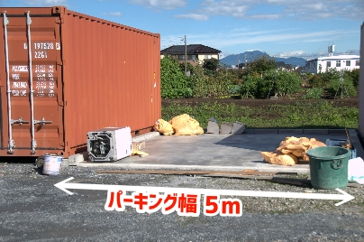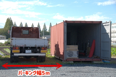 ●コンテナ横に5m幅の駐車スペース付き。24時間いつでもご利用いただけます。