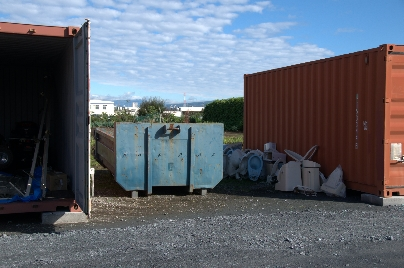 敷地内両脇にコンテナが並んでいます。12mほどの幅がありますので、トラックなど大型車両で来ても、荷物の積み下ろしスペースが十分に確保できます。