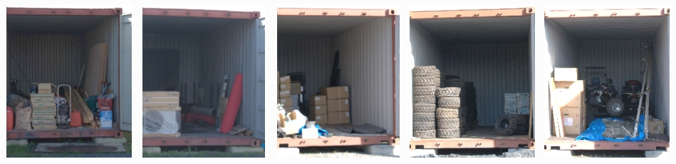 1)最左画像: 農業関連道具など、個人利用のものもたくさん入ります。